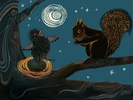 Eekhoorn maakte zich zorgen. Zou Duif niet vastvriezen?