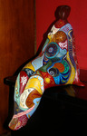 2012vrouwenfiguur van papier maché, beschilderd met symbolen uit de hele wereld